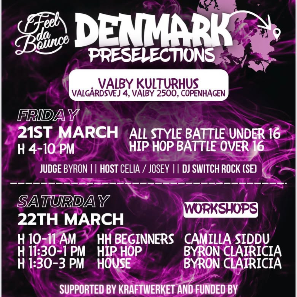 Movers Collective is thrilled to bring the 𝐅𝐞𝐞𝐥 𝐃𝐚 𝐁𝐨𝐮𝐧𝐜𝐞 𝐯𝐨𝐥.𝟏𝟑 𝐃𝐞𝐧𝐦𝐚𝐫𝐤 𝐏𝐫𝐞𝐬𝐞𝐥𝐞𝐜𝐭𝐢𝐨𝐧, a 1vs1 Hip Hop battle where the winner from the over 16 category earns a spot in the Top 16 Finals in Sardinia, Italy, on May 24-25, 2025!