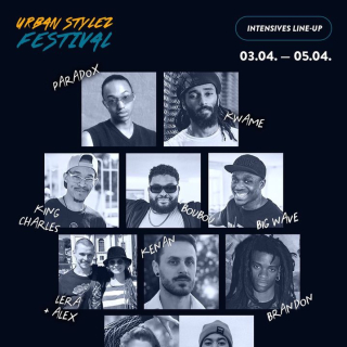 URBAN STYLEZ BIELEFELD WORKSHOPS LINE-UP 01.04-02.04 // Bielefeld ↠ Storm - Locking, Popping, Breaking ↠ Boubou - Waacking ↠ King Charles - Chicago Footwork ↠ Nastya - Experimental choreo ↠ Flavie - High Heels ↠ Big Wave - Krump ↠ OG - House ↠ Manon - Modern ↠ Notika - House ↠ Damiano - Kuduro Afrohouse ↠ Deborah - Modern Jazz ↠ Franky Dee - Hip Hop ↠ Josy - Meditation & sound healing ↠ Lera & Alex - Breaking ↠ Dhele - Hype, Experimental Impro INTENSIVES LINE-UP 03.04-05.04 // Bielefeld ↠ Paradox - Hip Hop ↠ Kwame - House ↠ King Charles - Chicago Footwork ↠ Boubou - Waacking ↠ Big Wave - Krump ↠ Lera & Alex - Breaking ↠ Kenan - Contemporary ↠ Brandon - Electro ↠ Manon & Dhele - Répertoire class Festival of Stylez and Cultures Sign up: link in bio More details: urbanstylez-festival.com Visit the home of Urban Stylez and experience unforgettable workshops, intensives, performances and battles. Become a part of the Urban Stylez Family and share our passion for dance, community and culture. Program Friday, 31.03.2023 Performance Evening, 20:30h Saturday, 01.04.2023 Workshops, 10:00-17:45h Battle Preselection, 18:00-21:00h OWL Jam, 21:00-01:00h Sunday, 02.04.2023 Workshops, 10:00-17:45h Battles, 17:00-21:00h OWL Jam, 21:00-01:00h Monday, 03.04.2023 Intensives, 10:00-18:30h Community Evening @Wilde Kuh Tuesday, 04.04.2023 Intensives, 10:00-17:45h Experimental Battle & Performance, 19:00h OWL Jam mit Kwame Wednesday, 05.04.2023 Intensives, 10:00-17:45h Location: DansArt Tanznetworks, Am Bach 11, 32602 Bielefeld